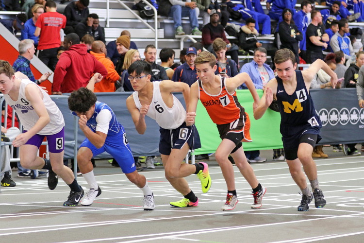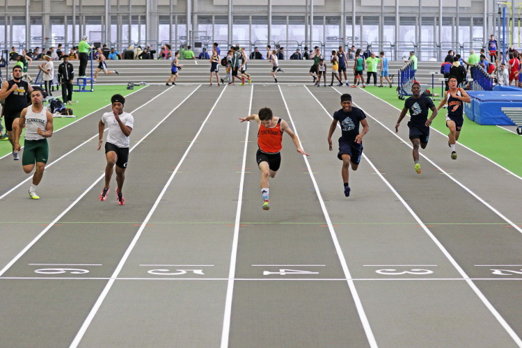 Senior Matt Powell and junior Kevin Milligan got things started in the sprints as both clocked 7.12 in the 55m Dash. Both are primarily 400m runners. In fact, this was Kevin's first time running the 55m Dash and it was the first time Matt has run the event since he was a freshman! Matt's time was a PR! Junior CJ Lee also competed in the 55m Dash and was close to his PR in 7.24. Sophomores Tray Cabbagestalk, Will Delendik, and Andrew Elsey competed in the Sophomore 55m Dash. Tray knocked 0.01 off of his previous PR by running 7.03 today. Will ran 7.16, and Andrew was next in 7.19 which lowered his PR. Tray was 9th overall and missed making the eight-person final by a heartbreaking 0.02 seconds!