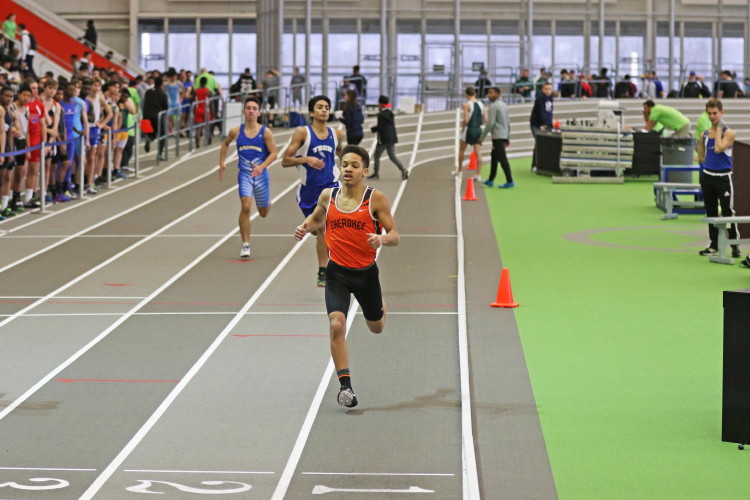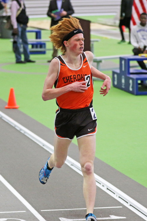 The next event provided the highlight of the meet for the Chiefs, as junior Kevin Milligan-Tinker ran a PR in the 400 dash and brought home the team's only medal of the meet! His time of 51.81 was good for 3rd place in the Olympic Conference (and third overall when including athletes from the Tri-County Conference). His time beat his previous indoor best of 54.39, and surpassed his previous outdoor PR of 52.31! In addition, his time of 51.81 was the fastest 400m run by a Cherokee boy indoors since Brandon Rapp ran 50.72 and Drew Viscidy ran 51.14 in 2012. Senior Matt Powell missed his indoor PR by just 0.09 seconds as he ran 54.76 for 14th place!