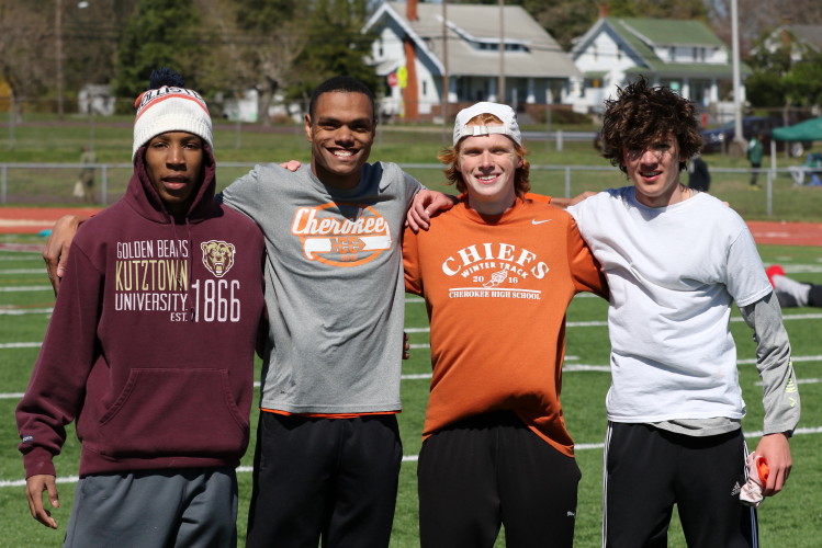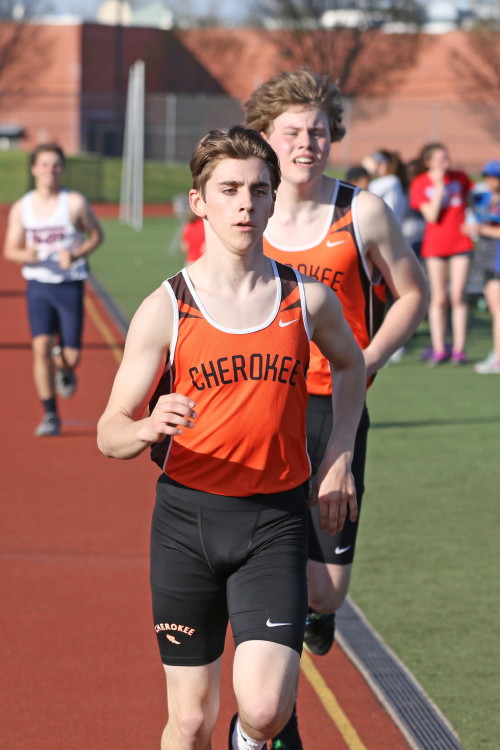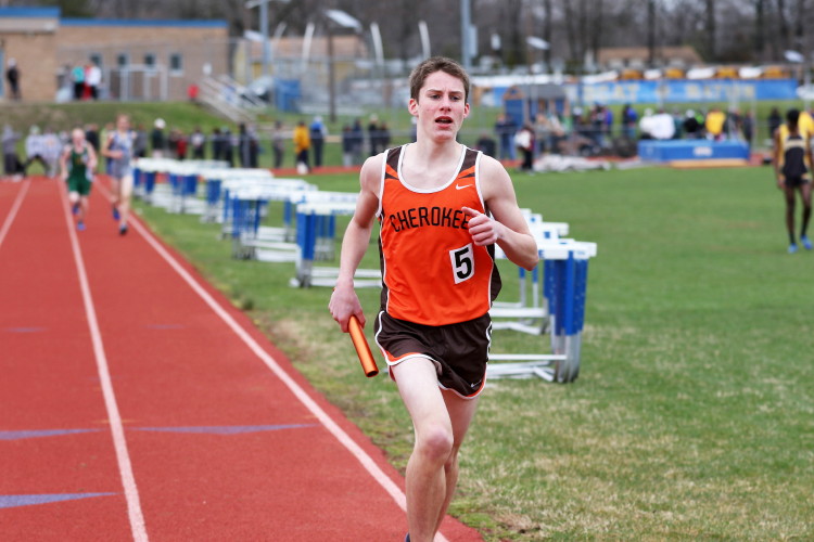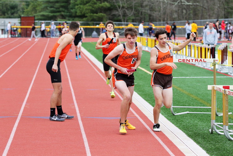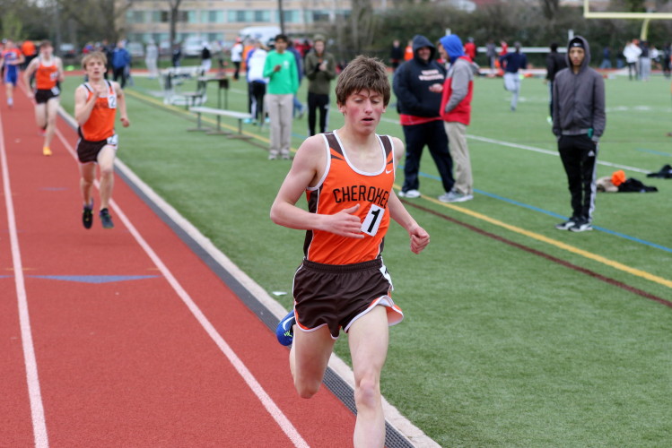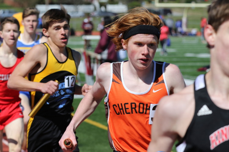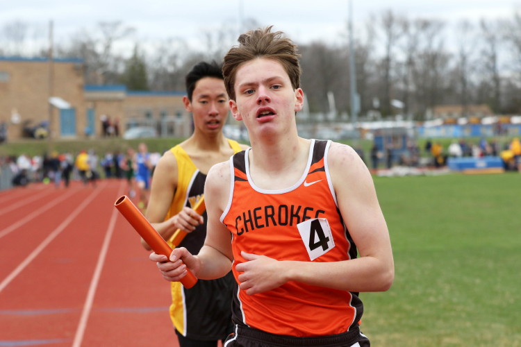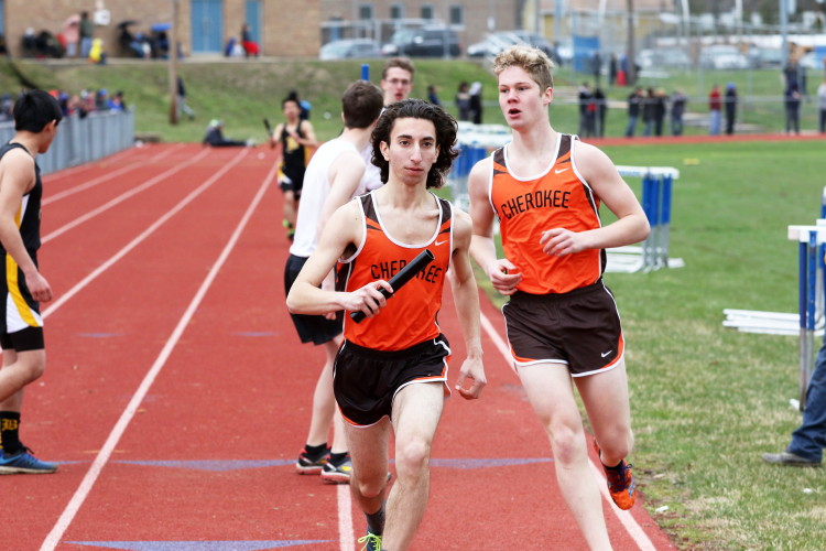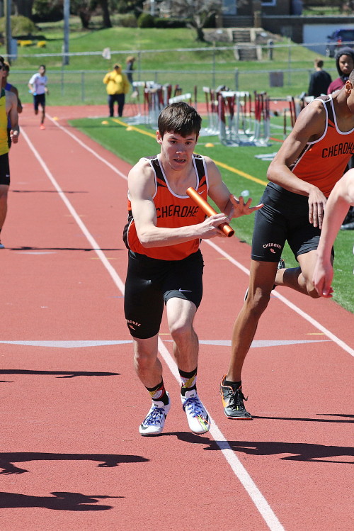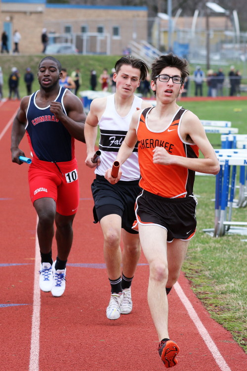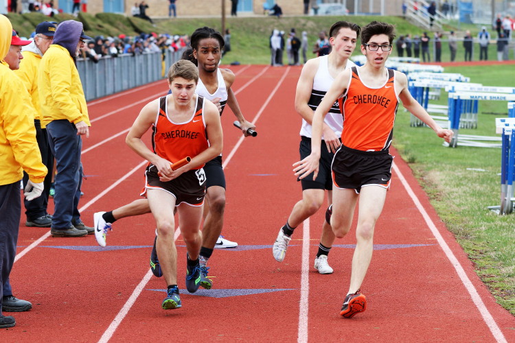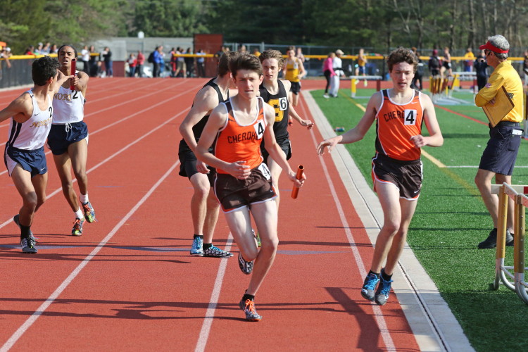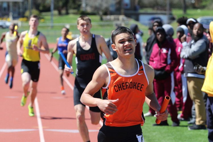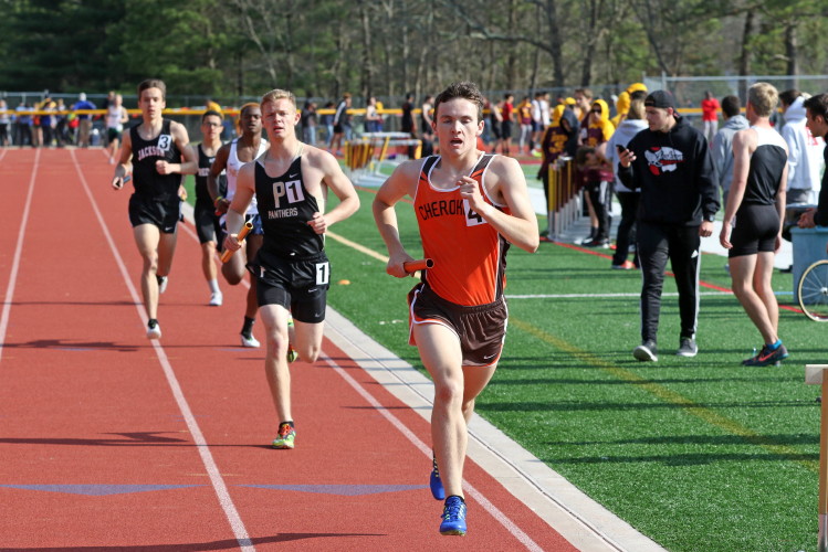 Lots of nice results but the highlight of the meet was the Distance Medley Relay where the team of Nick Falk, Kevin Milligan-Tinker, Cam WIlburn, and Jack Shea won the event! This is BIG news because (1) it's the fastest DMR time in the state so far (OK . . . only two weeks in!), and (2) the fastest DMR run by a Cherokee team outdoors since the 2012 squad, featuring former Cherokee greats Colin Merrigan, Drew Viscidy, Ross Staudt, and Shawn Wilson, ran 10:19.47 at the prestigious East Coast Relays! Nick showed a turn of speed as he closed on Egg Harbor's 1:55 half-miler down the homestretch to hand off even. Kevin then put Cherokee into the lead with a strong 400m leg. Cam was a little under the weather but still managed to run a solid 800 leg to keep Cherokee close, in 3rd place, and then Jack, in his first race since cross country, ran down the first two runners and closed well to give Cherokee a 10-second winning margin! That, boys and girls, is a major highlight!