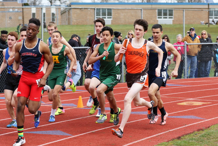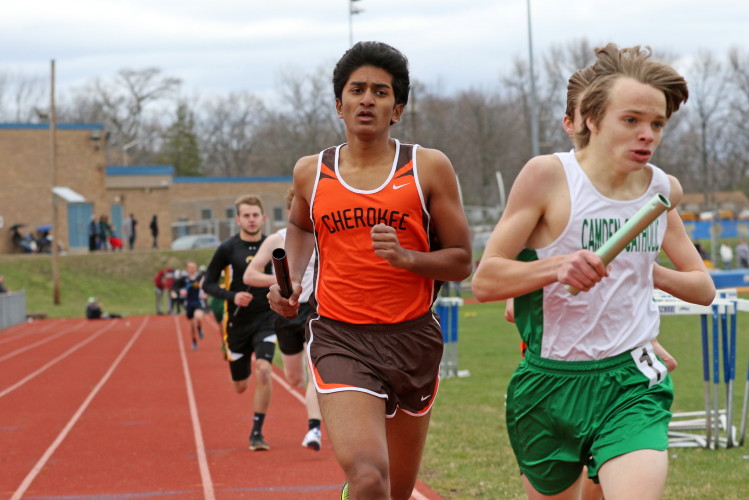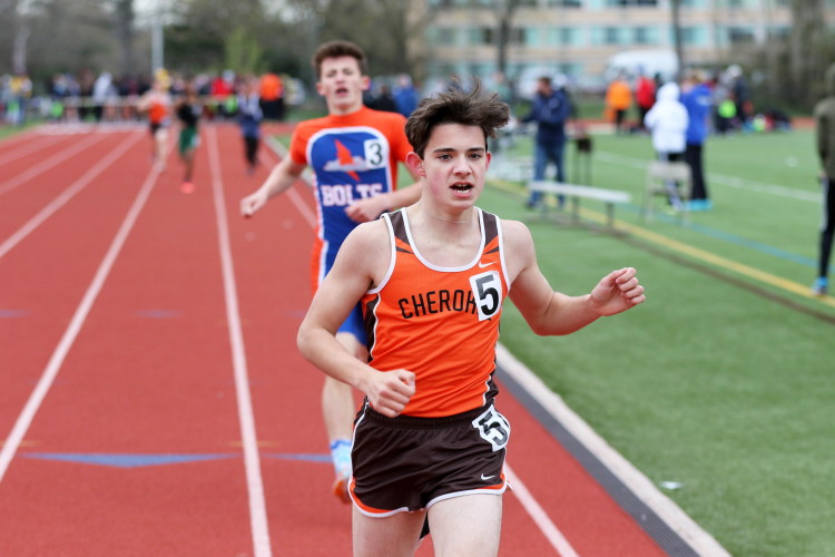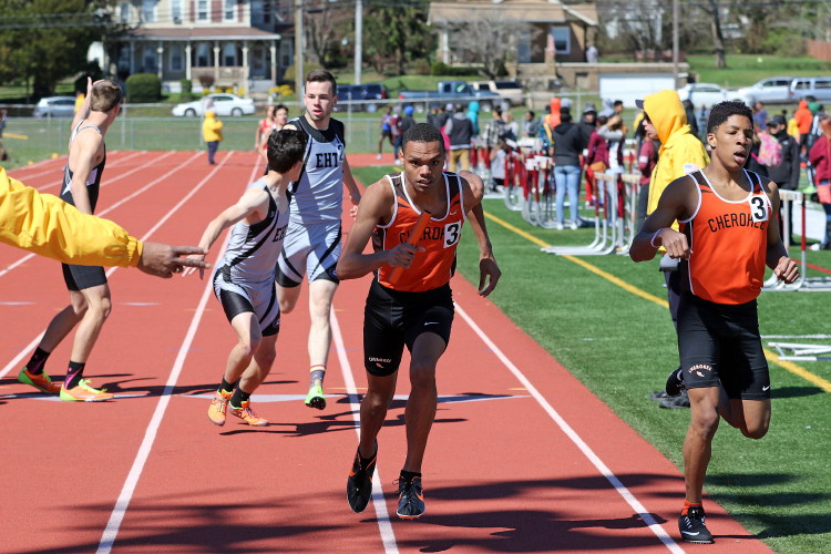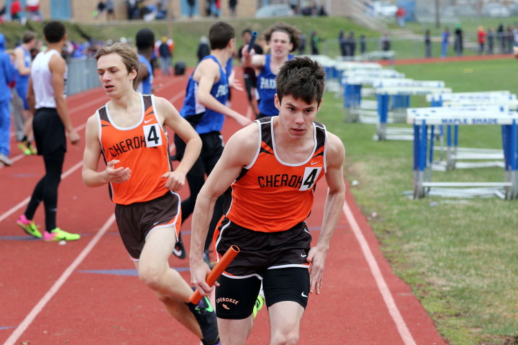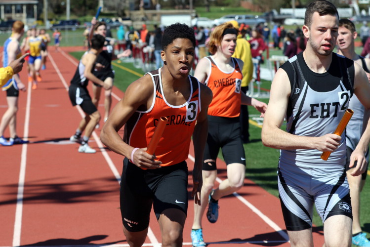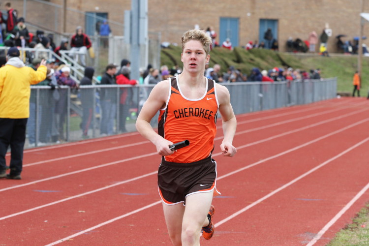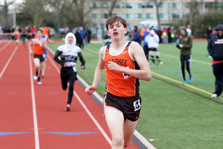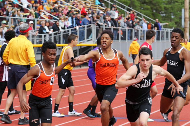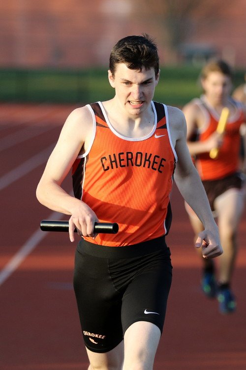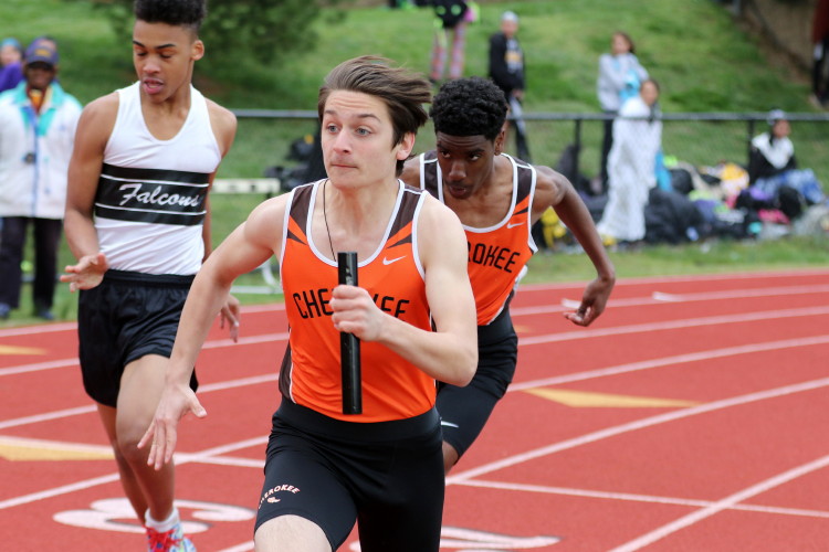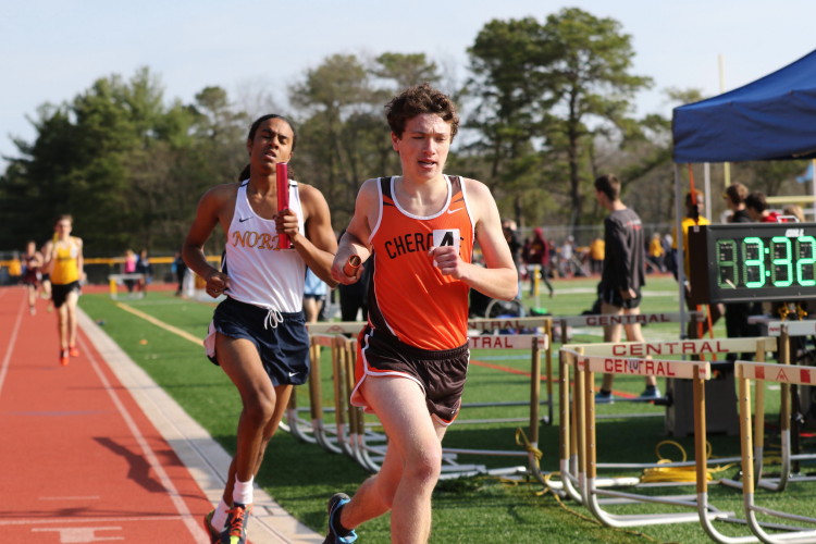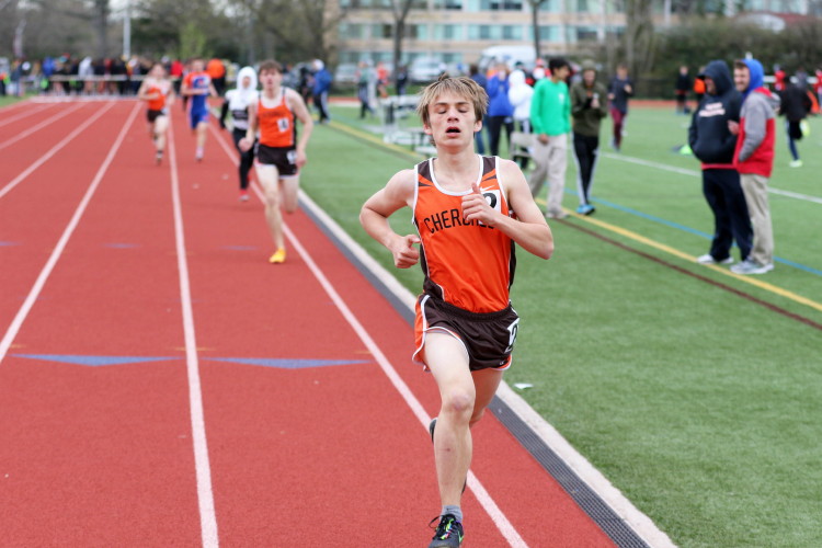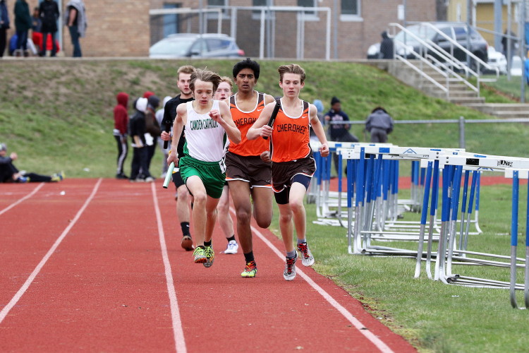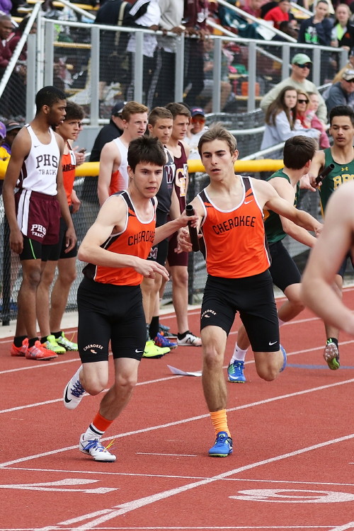 Lots of nice results but the highlight of the meet was the Distance Medley Relay where the team of Nick Falk, Kevin Milligan-Tinker, Cam WIlburn, and Jack Shea won the event! This is BIG news because (1) it's the fastest DMR time in the state so far (OK . . . only two weeks in!), and (2) the fastest DMR run by a Cherokee team outdoors since the 2012 squad, featuring former Cherokee greats Colin Merrigan, Drew Viscidy, Ross Staudt, and Shawn Wilson, ran 10:19.47 at the prestigious East Coast Relays! Nick showed a turn of speed as he closed on Egg Harbor's 1:55 half-miler down the homestretch to hand off even. Kevin then put Cherokee into the lead with a strong 400m leg. Cam was a little under the weather but still managed to run a solid 800 leg to keep Cherokee close, in 3rd place, and then Jack, in his first race since cross country, ran down the first two runners and closed well to give Cherokee a 10-second winning margin! That, boys and girls, is a major highlight!