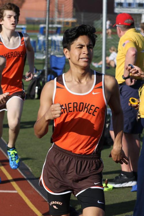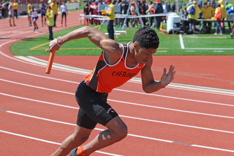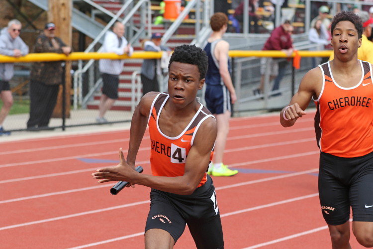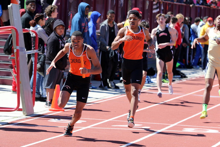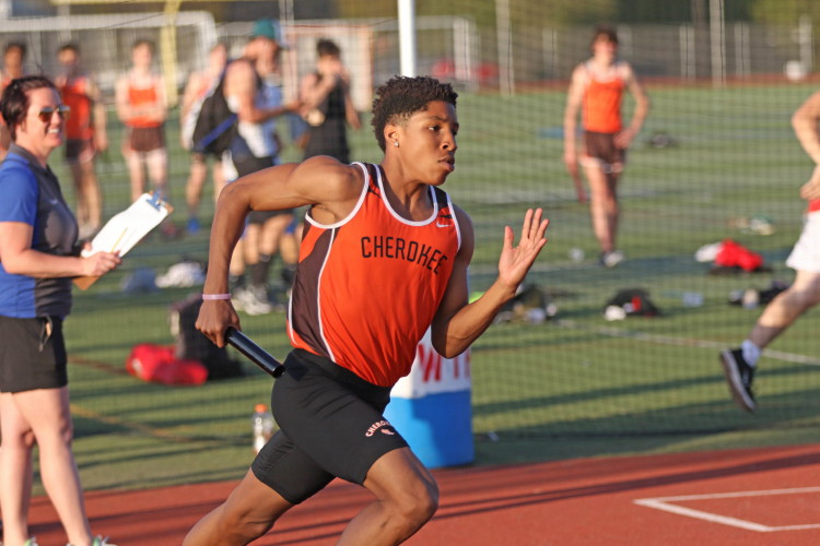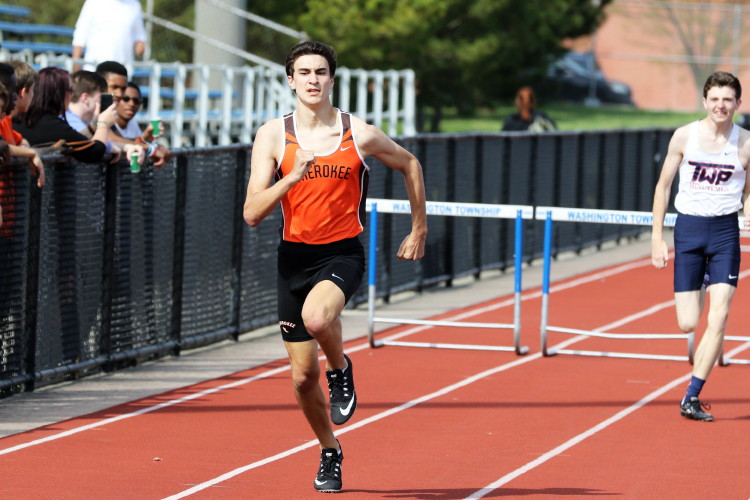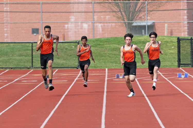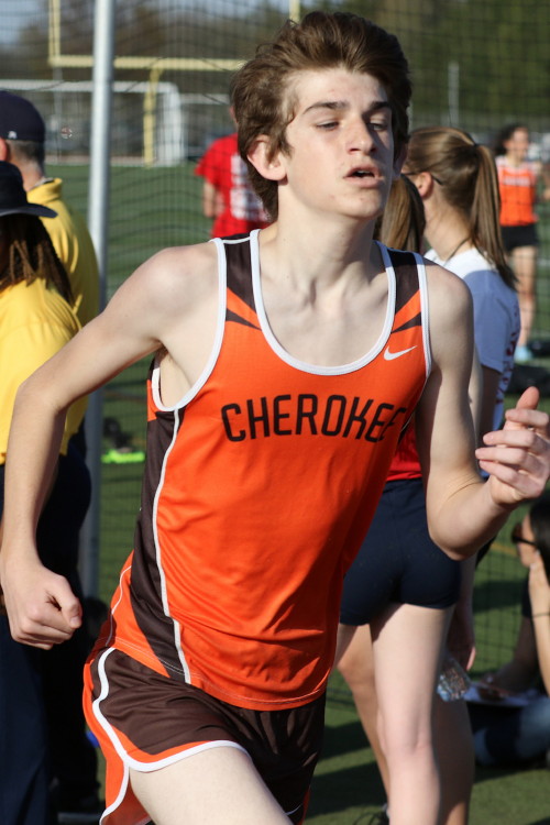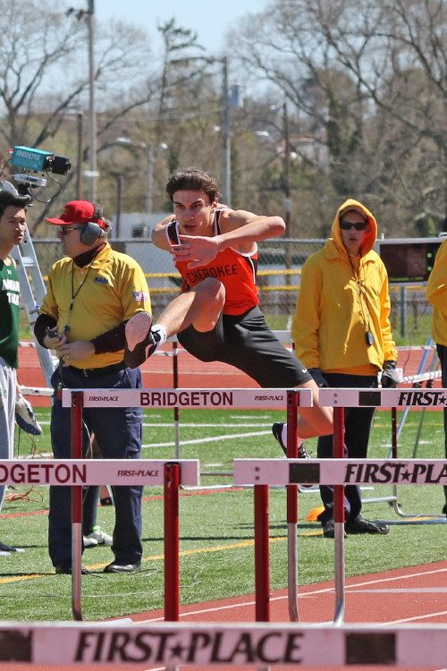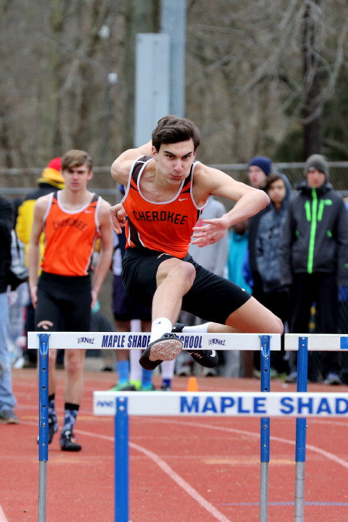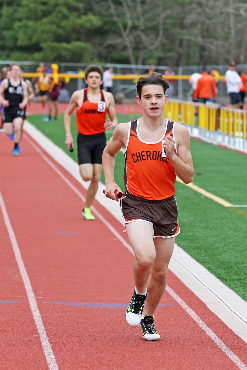 Among the Jumpers, in the Pole Vault, Kenny Sprankle tied for 1st, and Ryan Bishop tied his PR and placed 3rd! In the Long Jump, Washington Township swept but Ty Ortiz set a new PR! In the High Jump, Andrew Elsey tied his PR at 5' 10" and took 1st! Finally, in the Triple Jump, four jumpers excelled and qualified for the Conference Championships: Freshman Liam DiFerdinando cleared 37' 10.75"), Sophomores Tra Cabbagestalk (39' 4.5") and Ty Ortiz (38' 11"), and Junior Nkenna Opara. Nkenna's 41' 7" is the farthest jump by a Cherokee athlete since Darren McCluskey in 2011!