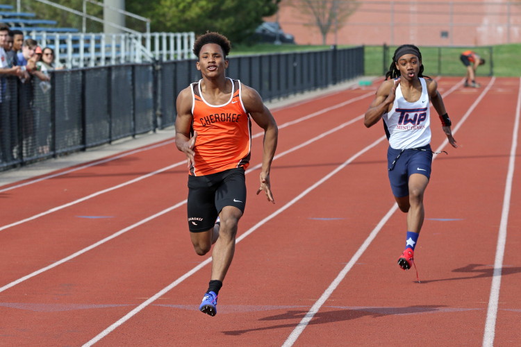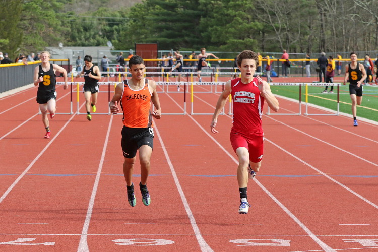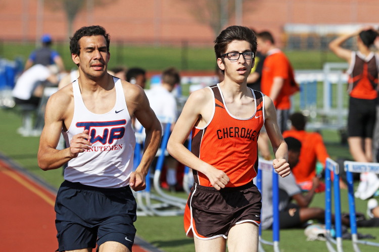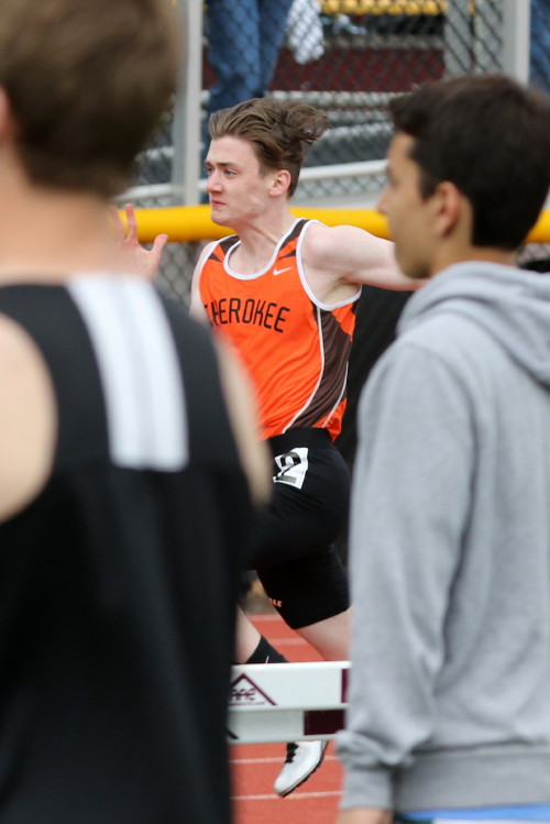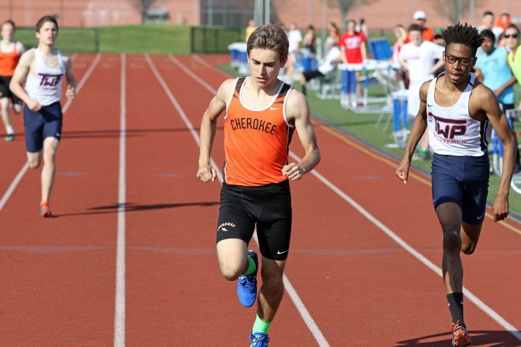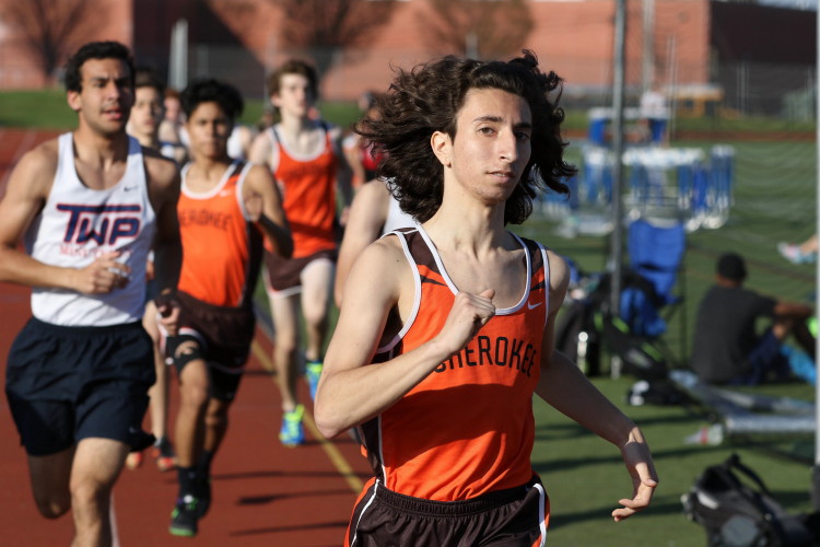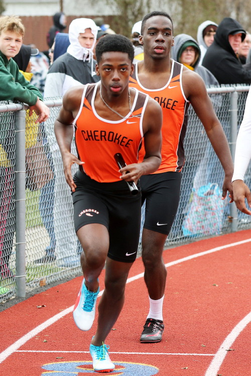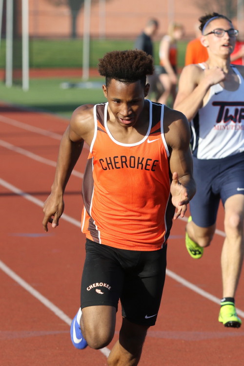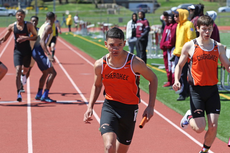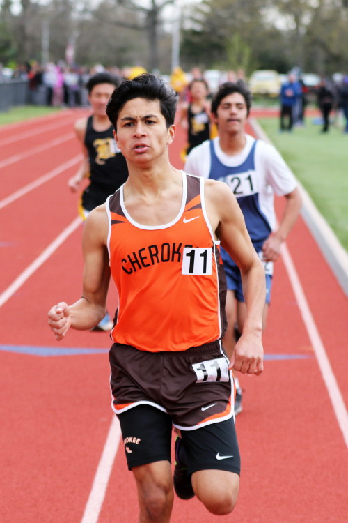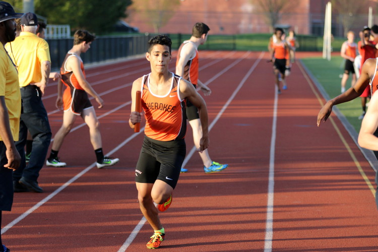 Among the Jumpers, in the Pole Vault, Kenny Sprankle tied for 1st, and Ryan Bishop tied his PR and placed 3rd! In the Long Jump, Washington Township swept but Ty Ortiz set a new PR! In the High Jump, Andrew Elsey tied his PR at 5' 10" and took 1st! Finally, in the Triple Jump, four jumpers excelled and qualified for the Conference Championships: Freshman Liam DiFerdinando cleared 37' 10.75"), Sophomores Tra Cabbagestalk (39' 4.5") and Ty Ortiz (38' 11"), and Junior Nkenna Opara. Nkenna's 41' 7" is the farthest jump by a Cherokee athlete since Darren McCluskey in 2011!