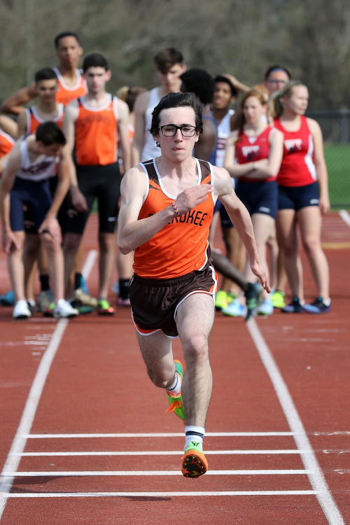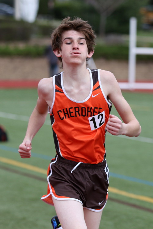 The Distance squad had a pretty nice day! Freshman, Chris Spisak, won the 1600m in a nice early season time of 4:37 with his senior teammates, Nick Falk and Jack Shea, helping with the pacing duties. Cherokee scored the 1-2-3 sweep to add 9 points to the team score! The 800m saw a slew of PR's led by Cam Wilburn's negative split victory! Freshman, Bobby Hackney won the 2nd heat with a big PR, and additional PR's were set by Jake Hyzy, Mike Gavio, Mike Moraschi, Chris Monteleone, Matt Morgan, George Villanueva, Matt Campbell, Aathi Anandan and Joe Sereday. The 3200m was covered by Nick Falk and Jack Shea running together at threshold pace to take the first two spots! As usual, most Distance team members raced in a 4 X 400m Relay and new personal records were set by, Chris Spisak, Matt Smith, Bobby Hackney, Jake Hyzy, Nik Kadirasani, David Jackson, Ethan Wechsler, Mike Gavio and George Villanueva! The final scoring toll for the Distance squad was: 21 - 6!
