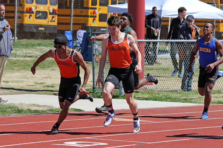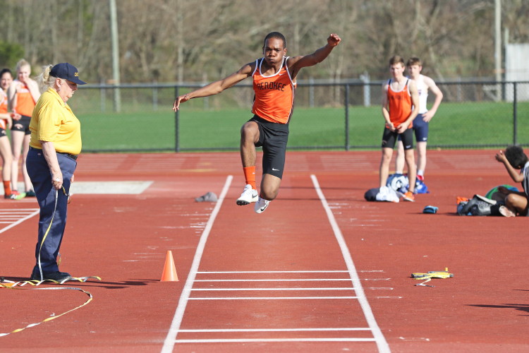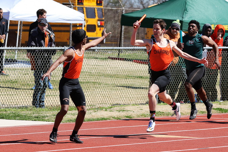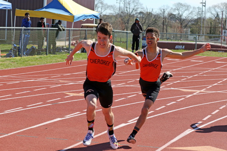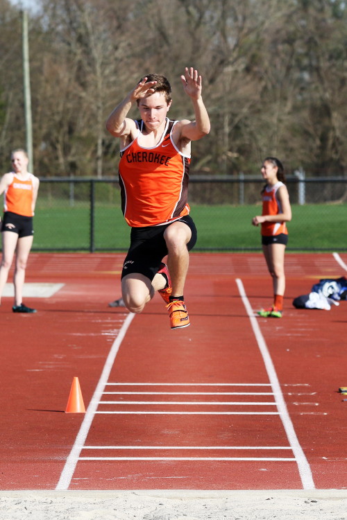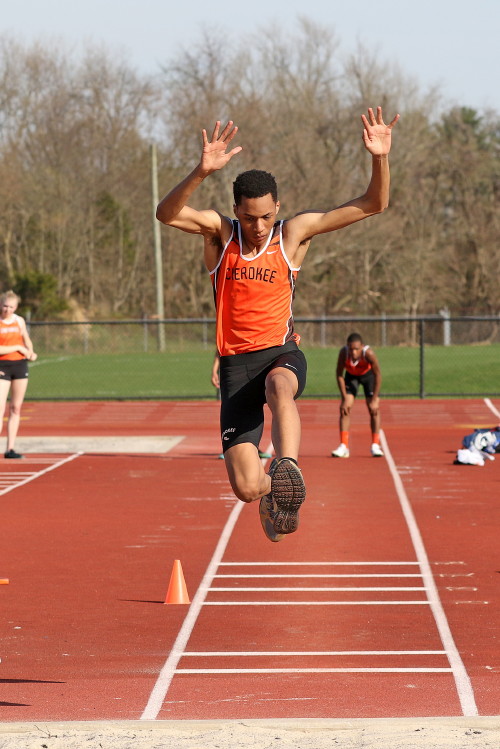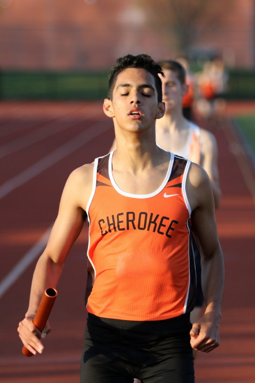 With all of the action on the track wrapped up, the meet ended with the Triple Jump Relay. In our last meet, Junior Nkenna Opara cleared 41' 7", which was the farthest jump by a Cherokee boy since Darren McCluskey jumped 41' 11" in 2011. Today, he backed that up as he led the way for the Cherokee contingent with a best leap of 41' 4.25"! Sophomore Tray Cabbagestalk is new to the event this season but he cracked the 40-foot barrier with a best jump of 40' 2.75"! Junior Tyler Ortiz reached 37' 0.25" on his best jump, which gave the team a combined distance of 118' 7.25" and earned them 2nd place, the best finish by a Cherokee team in any event today!