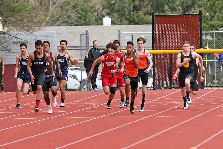 On April 15, 2017, a significant part of the team traveled for the first time to Central Regional High School in Bayville, NJ for their Eagle Relays. The event offered a wide variety of distance and sprint relays, and throws and jumps relays, in a relatively short period of time: it was over in an appropriately fast four hours! Zoom!