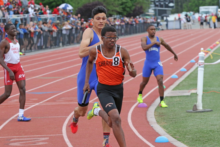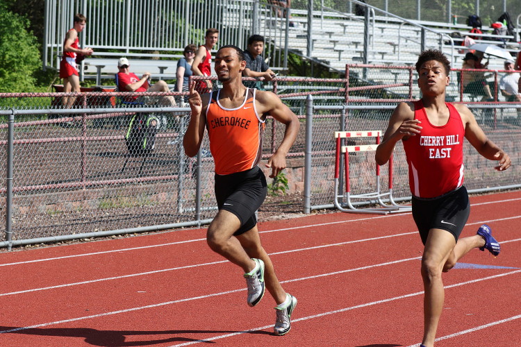 On May 16, 2017, Washington Township High School hosted the Olympic Conference Championships and a number of Cherokee's Varsity qualifiers competed! The meet opened with the 4 X 800m Relay and the team performed well but was disqualified after an unfortunate incident at the finish line! Kevin Milligan-Tinker ran a strong lead-off leg with a big negative split to give Cherokee the lead! Freshman, Tyler Jackson was caught by Camden Catholic and Washington Twp but pulled away from them down the homestretch to keep Cherokee in 1st! Cam Wilburn handed off after the 3rd leg in 2nd behind Washington Twp; and, although anchor Nick Falk made several attempts to get by the Township runner he was unsuccessful and the team finished in 2nd place. Unfortunately, the team was DQ'd when Nick threw the baton to the ground in frustration at the finish!