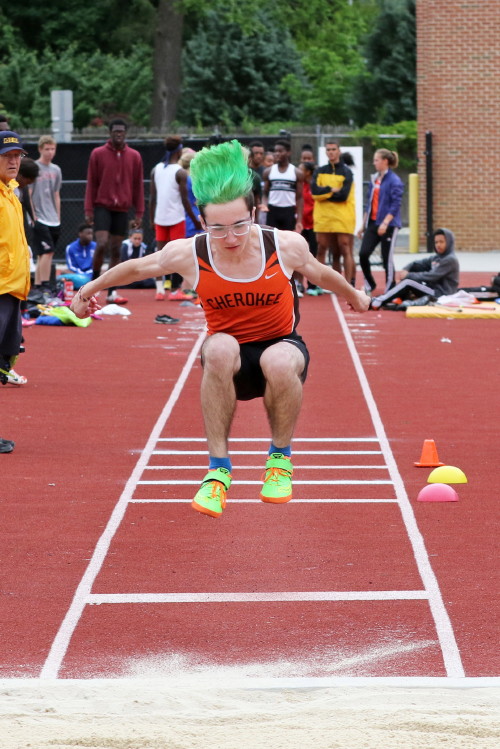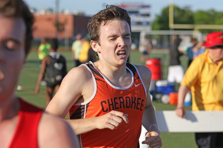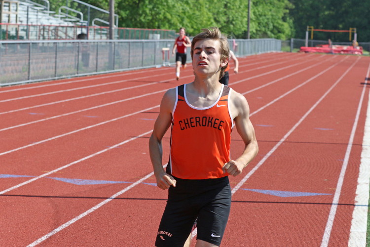 In the 3200m Run, Senior Jack Shea PR'd by 12 seconds to take the Championship! His time puts him 5th on the All-Time Cherokee List and takes him into the state meet with the fastest Group IV time from all 4 sectional races! Senior Nick Falk, doubling back from the 1600m and finished 3rd to advance to groups! Nick was the only Cherokee athlete to advance in two individual events! Freshman Chris Spisak became the first Freshman in school history to advance to the state meet in a distance event (800-1600-3200) with his 6th place finish!