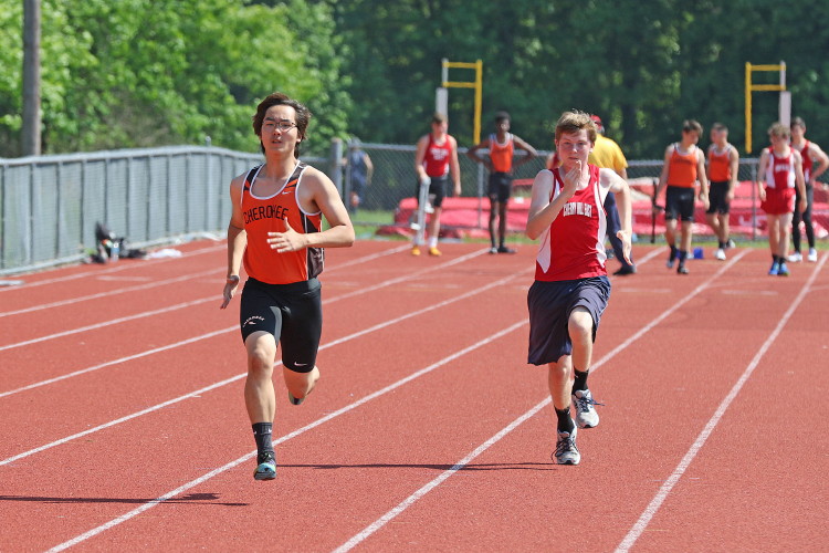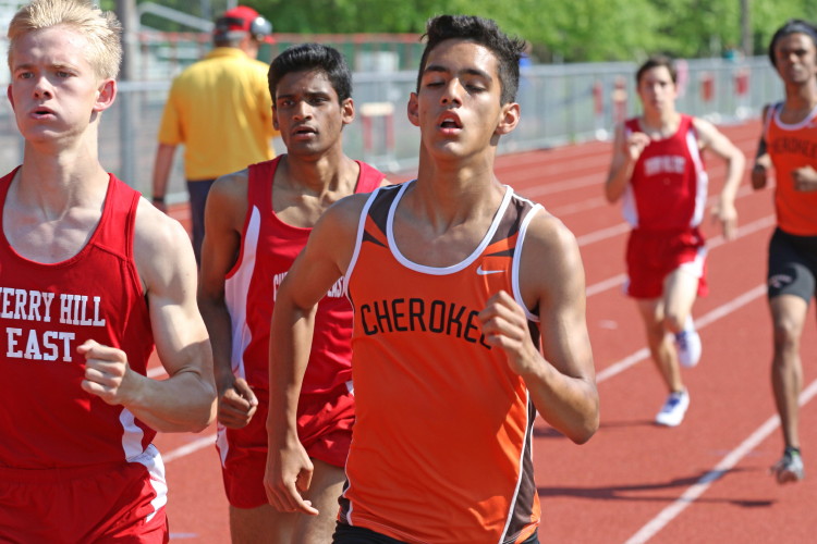 In the Open 800m Dash, Justin Kelly was Cherokee's 1st finisher with a new PR in a big negative split race! It was a good tune-up for him as he prepares for the 1600m Run at Sectionals. Freshmen, Tyler Jackson and Chris Spisak were next for Cherokee with Tyler setting a new PR as he raced to the line with Junior Justin Kelly! Both will be racing this weekend -- Ty in the 4 X 800m and 4 X 400m Relays and Chris in the 3200m Run -- big stuff for Freshmen! Cam Wilburn used this race to prepare for the 4 X 800m Relay on Friday and the Open 800m Run on Saturday. Mike Iannotta set a new PR, while Brendan Falzone and Matt Powell both had season-best times!