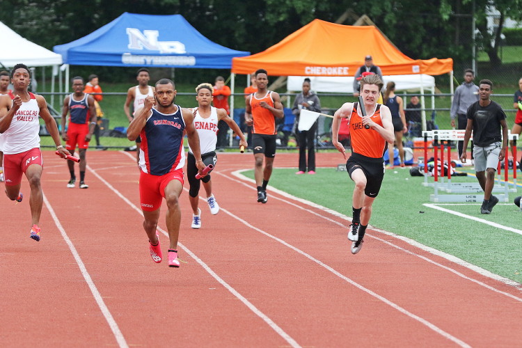 In the 200m Dash, Senior Terrance Graves battled with injuries during much of the winter and early spring season, and it was nice to see him come within a half-second of his PR as he ran 23.92 for 28th! In addition, Freshman EJ Bard returned to clock 24.25 and finish 32nd! Finally, on the Track, in the 4 X 400m Relay, Matt Powell, Tyler Jackson, CJ Lee and Kevin Milligan-Tinker knew they were seeded just outside the top six and knew what they needed to do to advance . . . and advance they did! They moved the baton in a season-best time of 3:26.49 and took 5th place! This was the fastest time clocked by a Cherokee squad since Brandon Rapp, John Barr, Drew Viscidy and Colin Merrigan ran 3:20.99 (for 3rd place at the Olympic Conference Championship) in 2012!
