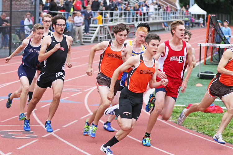 On May 23, 2017, a select group of Cherokee's Distance elite -- OK, let's just say, most of the distance guys -- traveled to Haddonfield High School for their annual Haddonfield Distance Night. The meet was originally designed as a "last chance before Sectionals" for distance guys to sharpen for their Sectional races or for distance guys to finish their seasons with a PR on a track protected from winds by the surrounding woods. The meet offered three distances, the 800m, 1600m, and 3200m, and Cherokee runners competed on each level.
