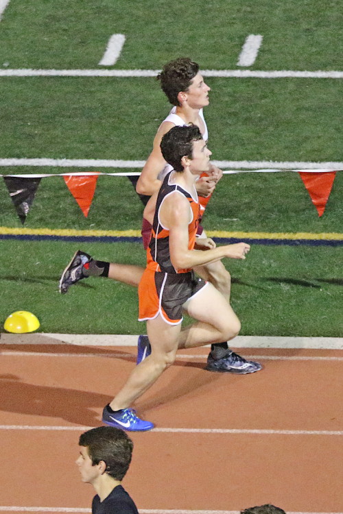 At East, several Sprinters scored well! Chris Cato picked up a 1st in the 400m Dash and returned to take 3rd in the 200m Dash! Matt Powell, who usually races the 200m and 400m Dashes, stepped-up to the 800m Dash and took 1st in a race that he led from the gun! Brandon Fisher took a 3rd in the 110HH; and Joe Sands, Aatish Gupta, Anton Specht and Koehler Housel took another 1st in the 4 X 400m Relay! In the Jumps and Throws, Ryan Bishop took 1st in the Pole Vault; Dan Schwartz took 3rd in the Long Jump; and Jared Selkow took 2nd in the Javelin!