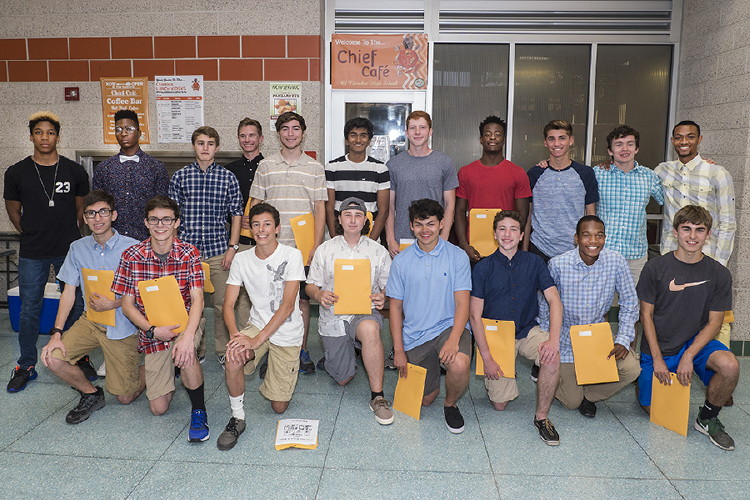 Each class was presented separately with Coach Lynn introducing the Freshmen; Coach McMichael, the Sophomores; Coach Shaklee, the Juniors; and Coach Thompson, the Seniors. Following that, the Team Captains were introduced: Ryan Belz, Nick Falk, Adonis Giovetis, Terrance Graves, Kevin Milligan, Matt Powell and Jack Shea, all Seniors except for Kevin; and those who were recognized during the season as the Athlete of the Week: Jack Shea, Nkenna Opara; Tray Cabbagestalk, Nick Falk, Chris Spisak and Andrew Elsey!