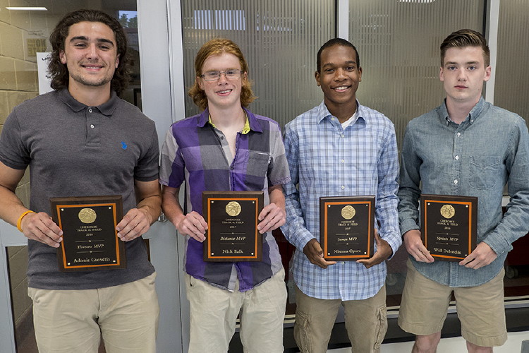 Traditionally, the Coaches' MVP Awards are by far the most important awards of the season because they are given by people who really know the athletes and know the most-deserving of them all! They are selected not simply because they are the fastest runners, the highest or longest jumpers, or the farthest throwers on the team. These factors are important but the coaches also consider their dedication to the team and its values, their leadership, character, self-discipline and self-motivation, sportsmanship, competitiveness, and persistence. Congratulations to the following athletes who were selected to receive the Coaches' MVP Awards: Will Delendik, Sprints; Adonis Giovetis, Throws; Anthony Natale, Hurdles; Nick Falk, Distance; and Nkenna Opara, Jumps!