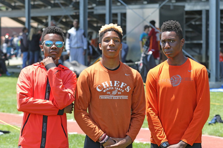 In the 4 X 100m Relay -- the first Cherokee 4 X 100m Relay team to ever qualify for the Meet of Champions! -- the team of Tra Cabbagestalk, Terrance Graves, EJ Bard and Will Delendik knew thay had a slim chance of medaling as they were among the last "wildcards" to be admitted to the meet. Still, they were encouraged! Speed, they knew, was a major factor but the key in the 4 X 100m Relay is to move the baton with precise hand-offs from one athlete to another and, in that aspect, they were among the best! Unfortunately, that was their downfall . . . one hand-off was executed outside the passing zone and the team was DQ'd! The news is not all bad, however: of the four sprinters, one is in the 9th grade, two are in the 10th grade, and only one is in the 12th grade . . . there is a future!