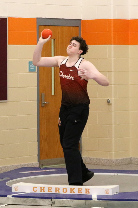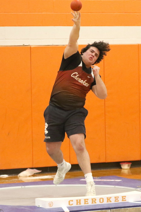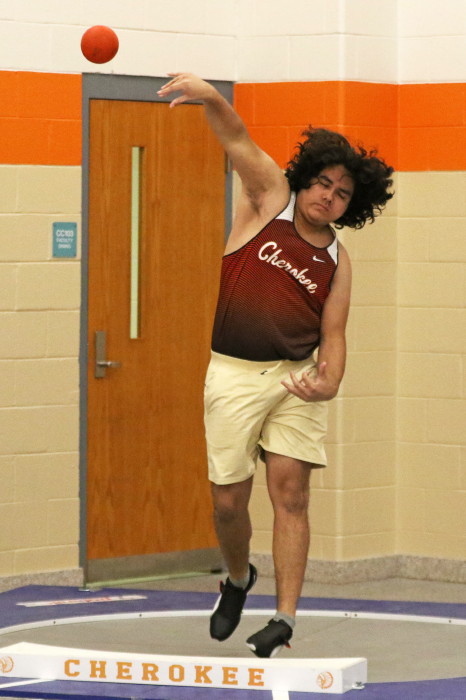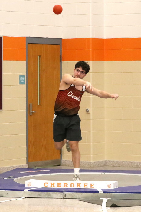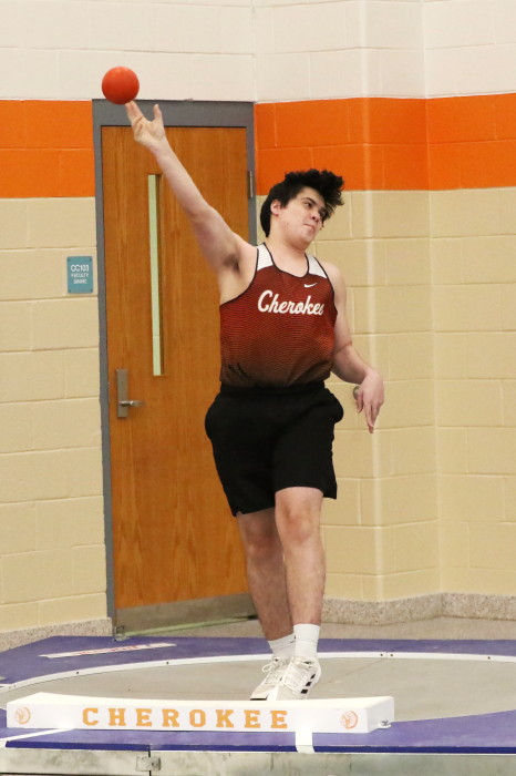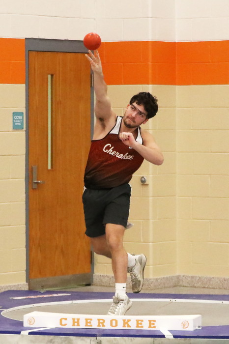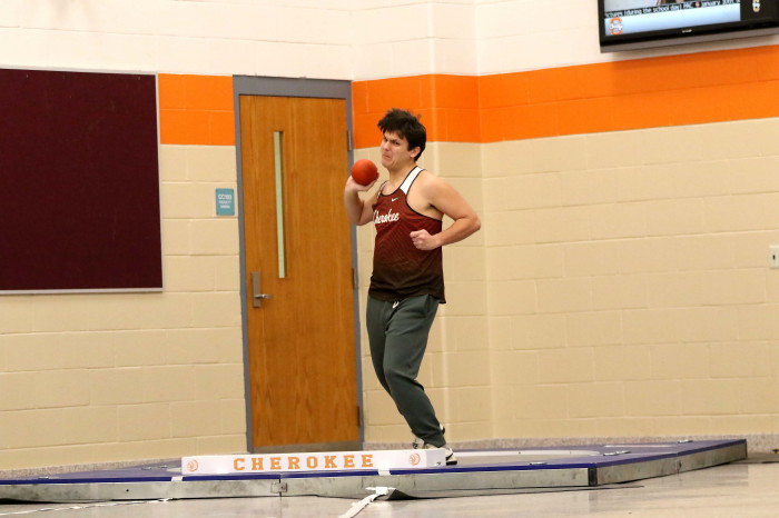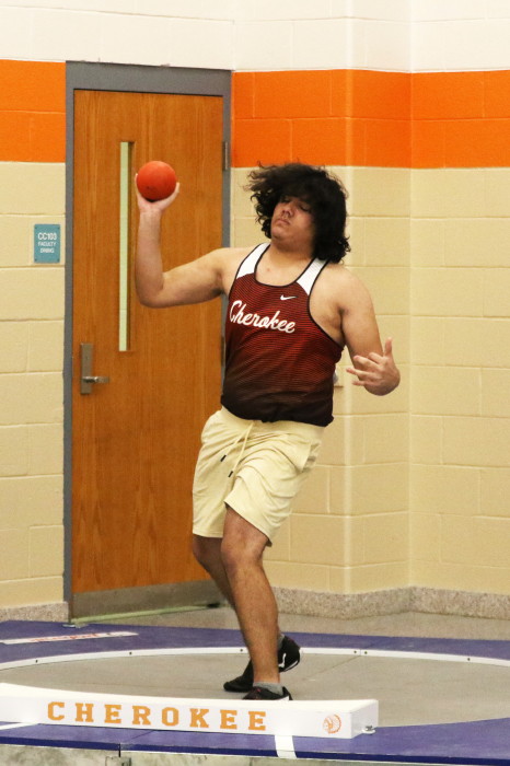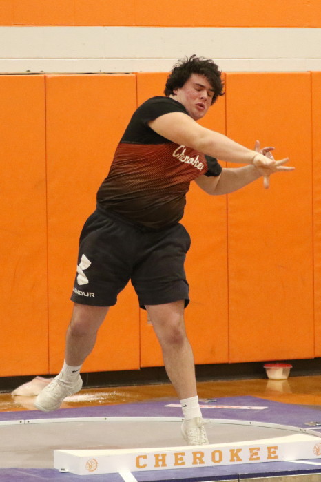 On January 24th, 2023, Cherokee hosted the second of several Winter Throws Meets, the Cherokee Throw Down # 2, in a cafeteria and gymnasium! Again, with three Olympic-style circles, the event went quickly enough for the participants to each get four throws in competition and, then, to get home in time to watch Laverne and Shirley reruns on TV . . . Wait, that should be . . . in time to do their homework properly. GO CHEROKEE THROWERS!