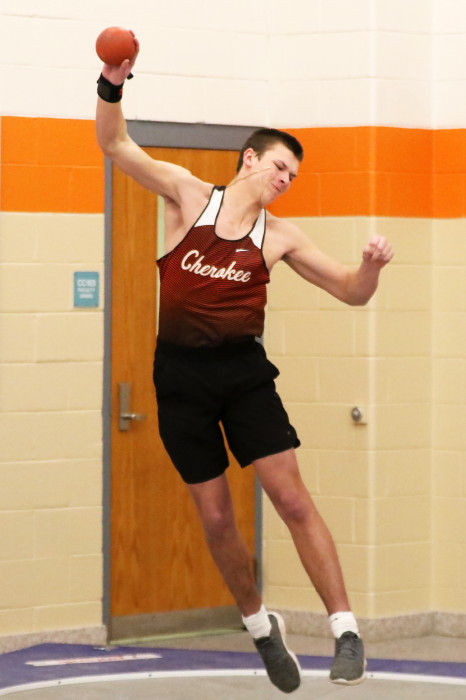 Only one Putter managed a PR at the meet! Junior Shane Sloan cleared his PR by a little more than a foot, while Juniors Zach Ott and Brody Wolfort managed decent throws but not PR's. Cherokee's prospective record-setter in the High Jump, Junior Sam Greene, is glued at 5' 4" (his height at the last four meets) and clearly has another foot in his future!