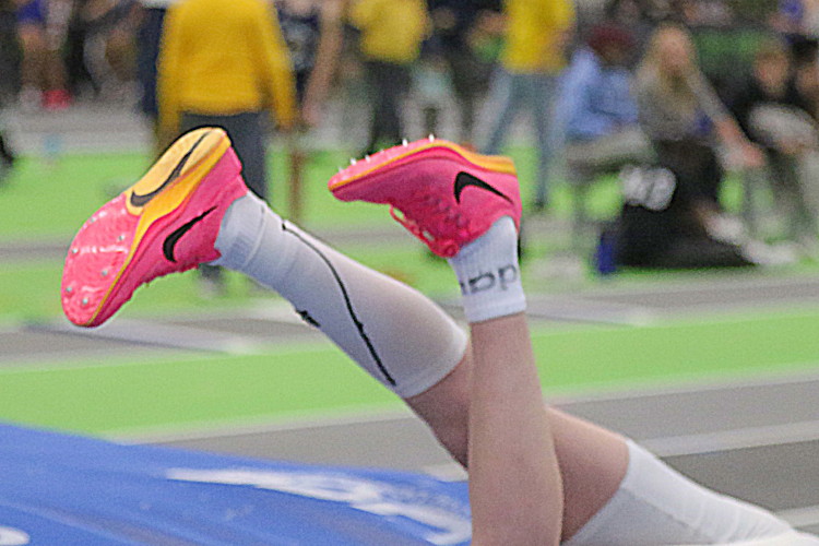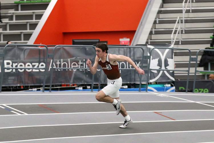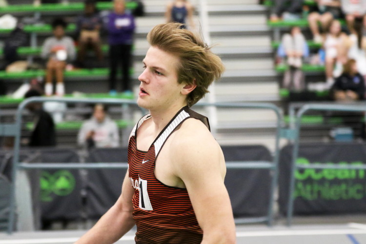 Among the Sprinters, Hurdlers and Jumpers, Senior Wesley Davenport had a nice night with a PR! In the 55m Dash, he clocked 6.77 in the Prelims, qualifying for the Finals, and then he crossed the line in 6.72 and took 4th place! (This is after his 200m performance on January 16th when he PR'd in 23.37 and took 5th!). Christian Sproesser and Jeremy Linden raced both the 55m Dash and the 55m HH and both were just off their PR's.