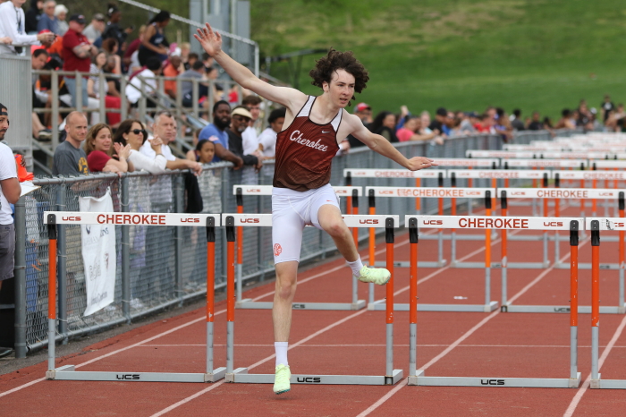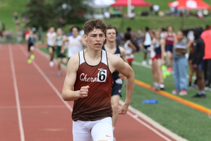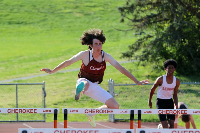 Finally, among the Distance runners, four of Cherokee's best and most respected competed in a very challenging Open 800m and, after a series of cronic illnesses and injuries, as well as a winter on the Swim Team, stepped-up and raced very well! In the seeded, Heat 2, Seniors Patrick Ditmars (1:55.80) and Conor Jacob 1:56.99) took 1st and 2nd, and Junior Nick Kuenkel (PR 1:58.38) took 5th! In the unseeed, Heat 1, Junior Bobby Poplau (2:00.37) took 2nd (10th overall). All are healthy and focused on the State Meet of Champions!
