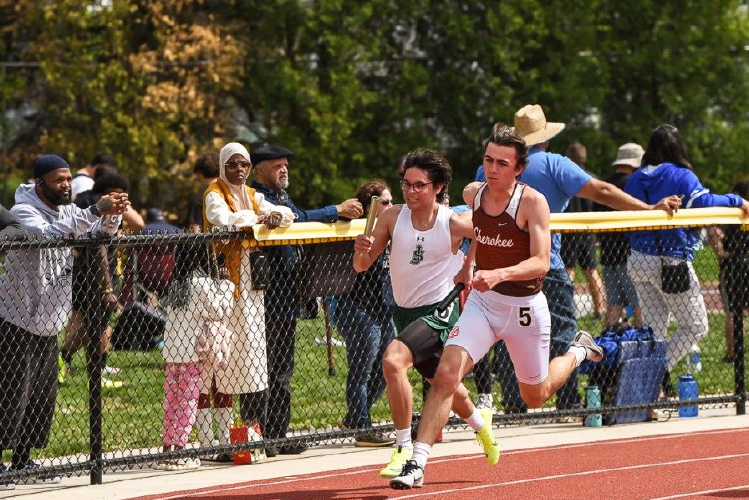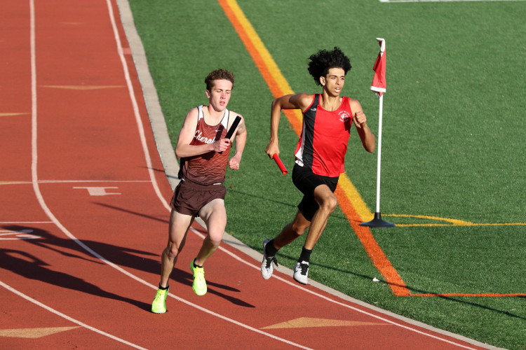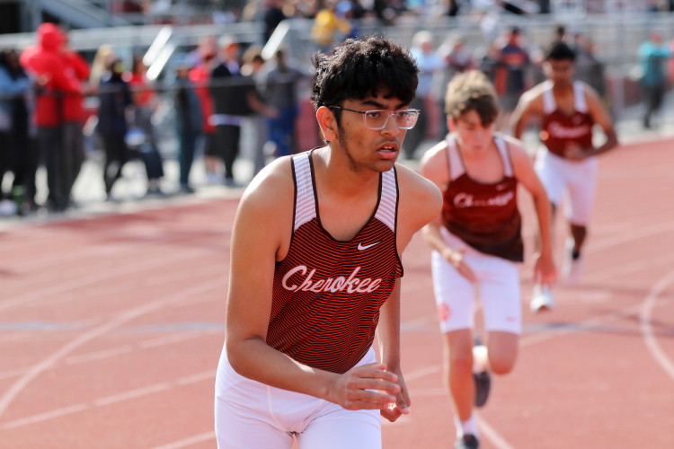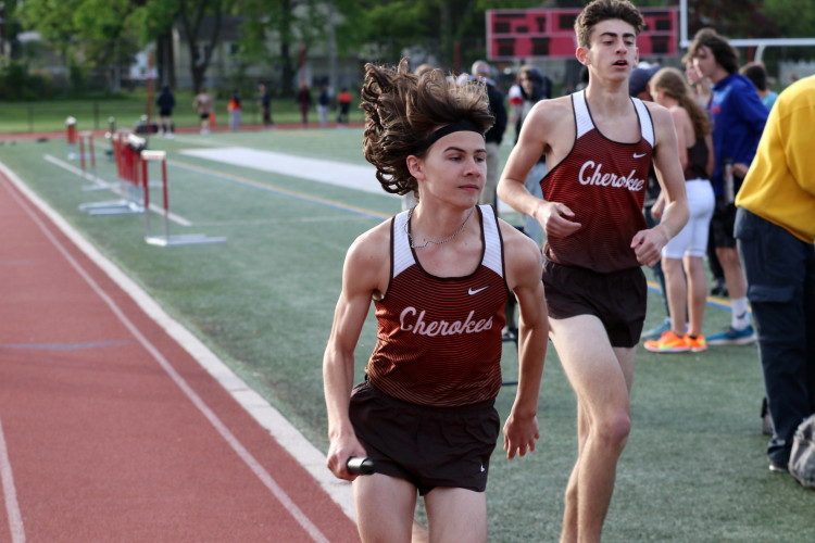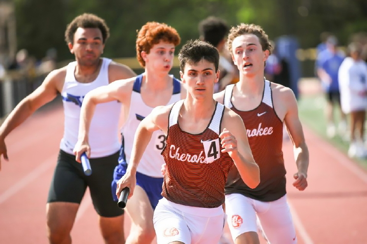 This year, Cherokee entered two relay events with eight athletes, 5 of which had competed before -- Sprinters Wesley Davenport raced last year; Murad Campfield, Brian Magee and Brian Mitchell were in the 4 X 100m Relay; and all the distance runners raced the 4 X 800m last year and were racing the 4 X 400m this year: Conor Jacob, Nick Kuenkel, Bobby Poplau and Patrick Ditmars.