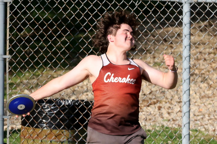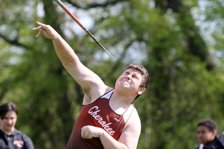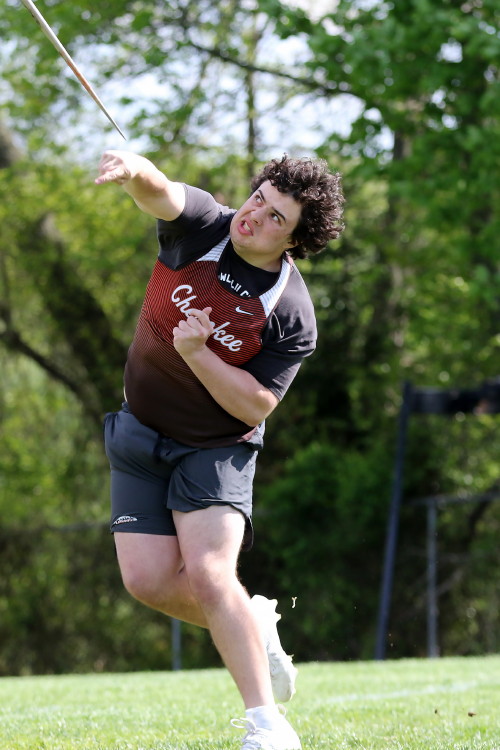 In the Shot, Zach Ott led the team with a PR 6th place showing, with Dylan Grau and newcomer Thomas Kent following in 19th and 28th! Shane Sloan followed in 29th with his own PR! In the Discus, Brody Wolfort led the team in 9th place and Alex Goode took 11th! They were followed Shane Sloan in 13th, and Jordan Stone in 37th, both with PR's! Down the line was Austin Bird in 41st, and Freshman Ed Firstenburg in 49th and newcomer Hunter Kochie in 55th! Finally, in the Javelin, Brody Wolfort again led the squad, taking 11th, and Francisco Sandolval followed in 18th place. Behind them, Anthony Maszlanka took 22nd with a PR, Andrew Geisenheimer took 29th and Brody Ludman took 36th. The Cherokee group ended with three Freshman taking 44th, 45th and 50th: Baron Hinson, Dominic Eleftheriou and newcomer Rebel Johnson!