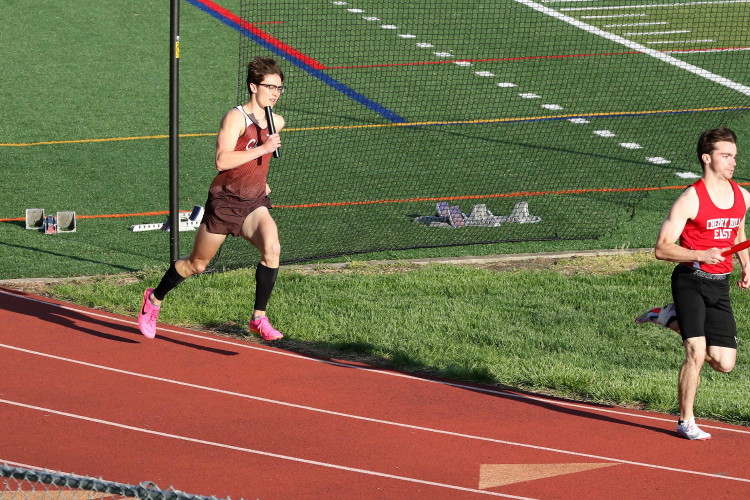 Then, there's the 4 X 400m Relay! This year, Cherokee had an excellent team of distance runners stepping up to the starting line but none was in top form. One participated in a different sport through the winter, while the other three missed huge blocks of training because of chronic sickness or injuries. They were, however, coming on: they raced an excellent 4 X 4 just the other day in a dual meet against CH East and Coach Shaklee was confident they would do well in the traditional South Jersey: Large Schools heat! Logistics were poor as they had to get there on the bus with the 4 X 100 team, scheduled to race in the morning, and their race wasn't scheduled until after 4:00 in the afternoon! A long time to hang around and stay focused on racing at "the Carnival" but, as they say, "It is what it is!"