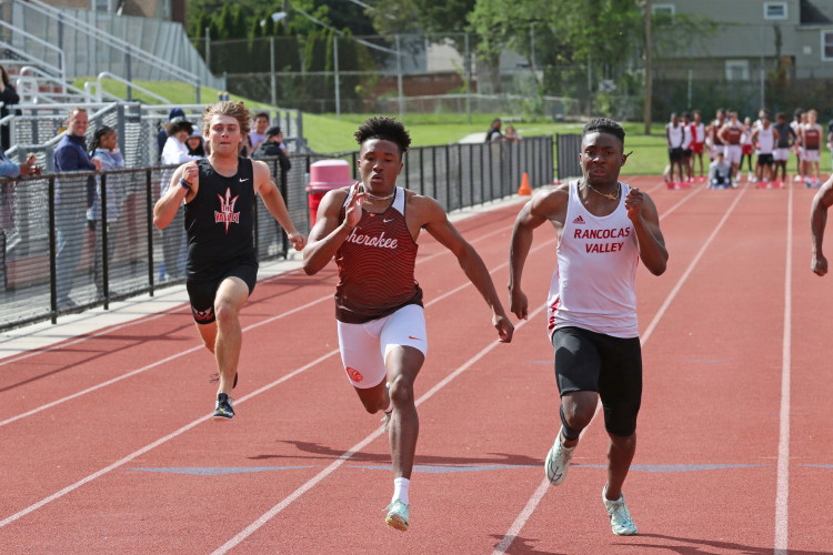 In the past, the Association held similar meets but the entrance standards were so low that it became just like any other meet. Not this time! Indeed, only seven Cherokee athletes qualified and all did well, if not with PR's, in their events! Briefly, Senior Sprinter Wesley Davenport clocked 11.34 (PR is 11.14) in his heat in the 100m Dash. He took 5th and advanced to the Finals, where he took 7th in an fiery 8-man Final!